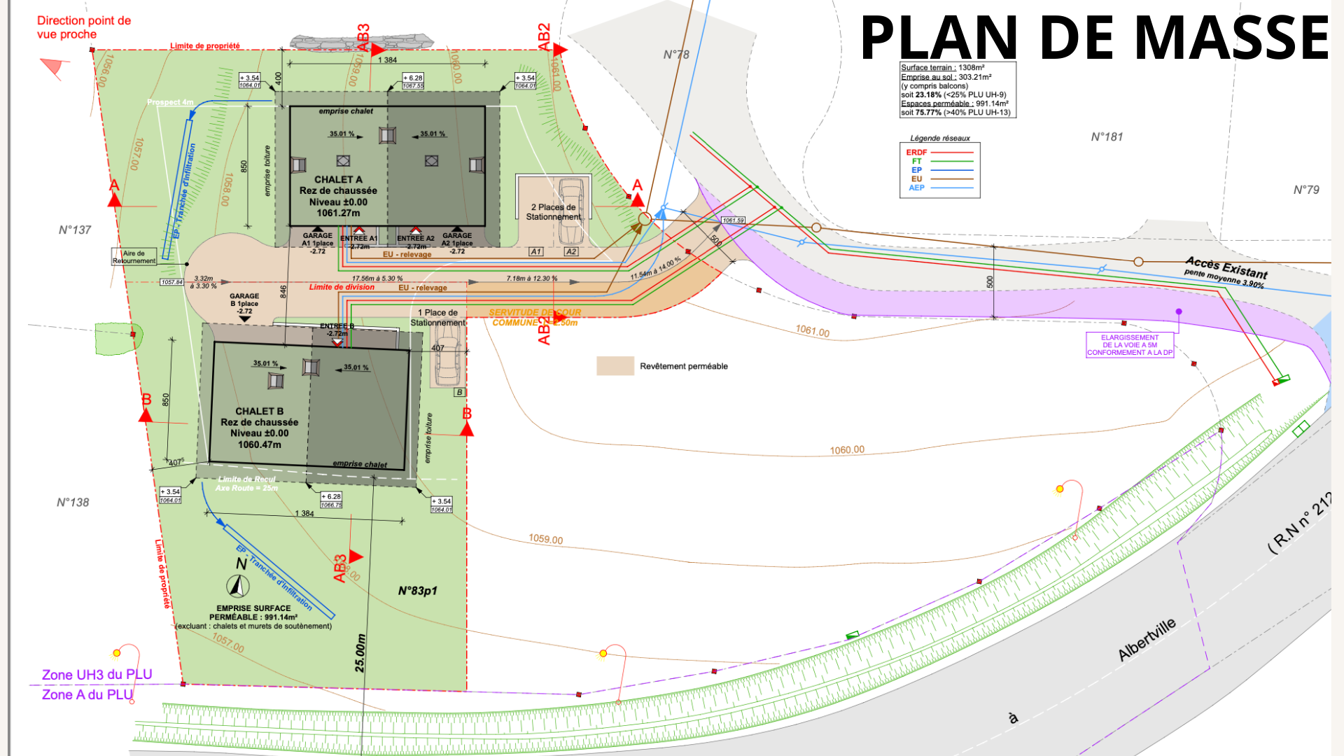 - Projet chalet A avec 2 demi chalets et chalet B entier