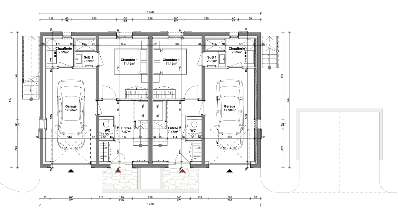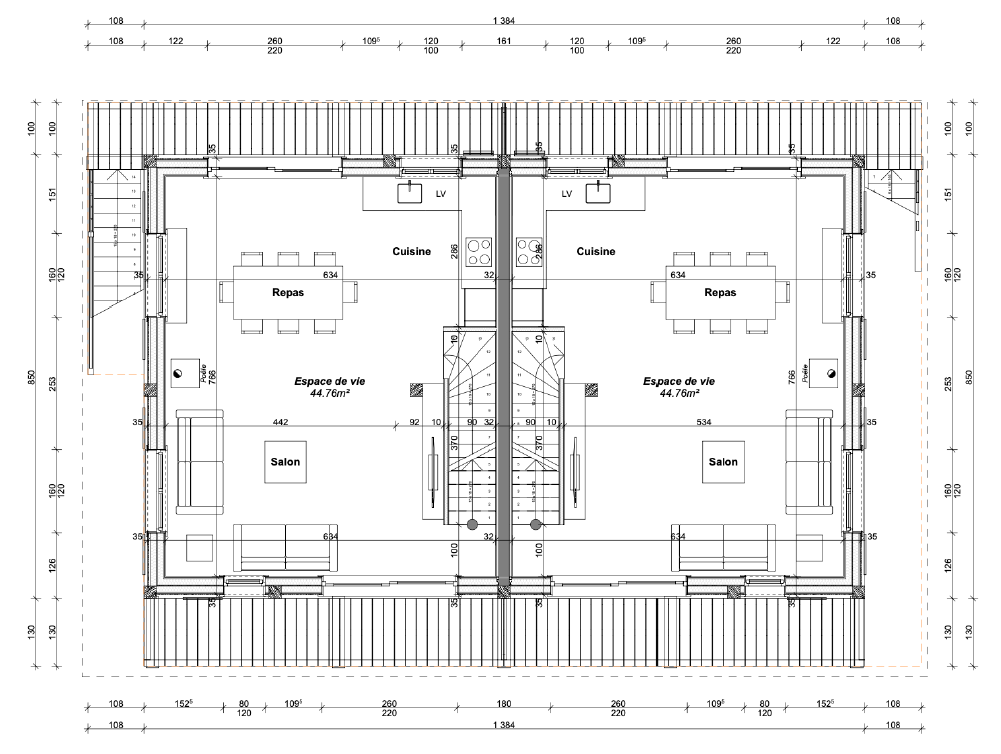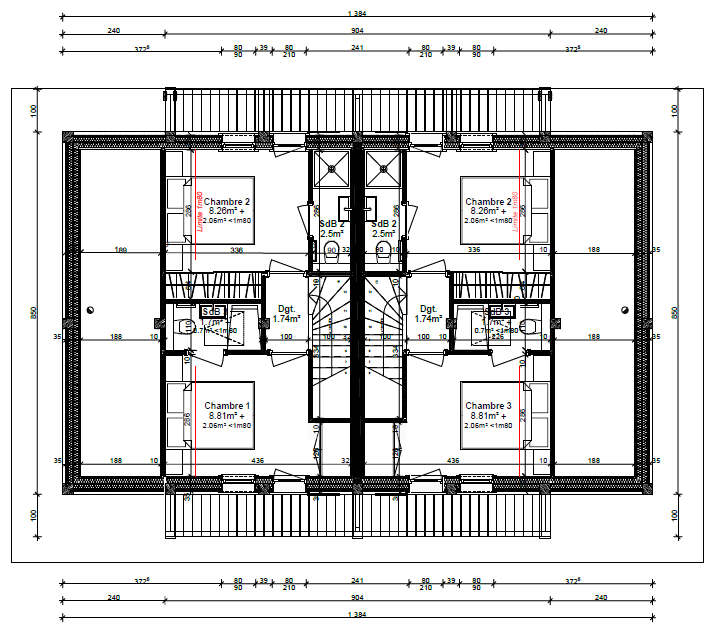- Pour chaque demi-chalet 104 m2 nets habitables