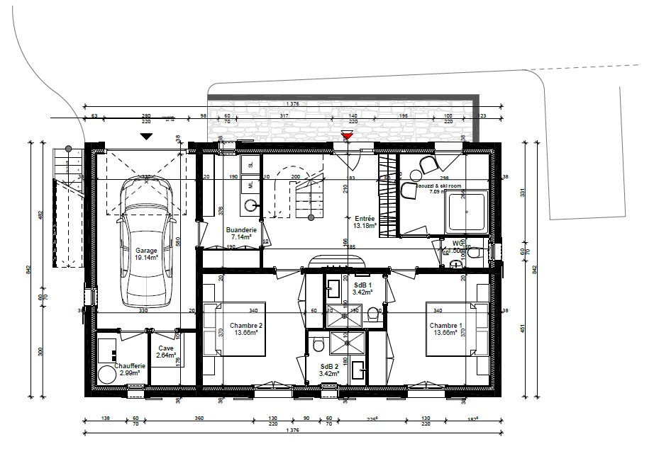 - Rez-de-chaussée avec un garage/cellier (21 m2 intérieur)