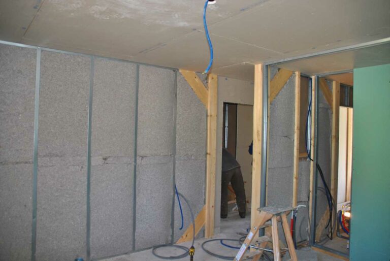Par ailleurs, les traitements appliqués lors de la fabrication rendent la ouate de cellulose ininflammable, assurent sa longévité, et empêchent moisissures, rongeurs ou micro-organismes de s’y installer … Nous l’utilisons dans les cloisons intérieures et au sol.